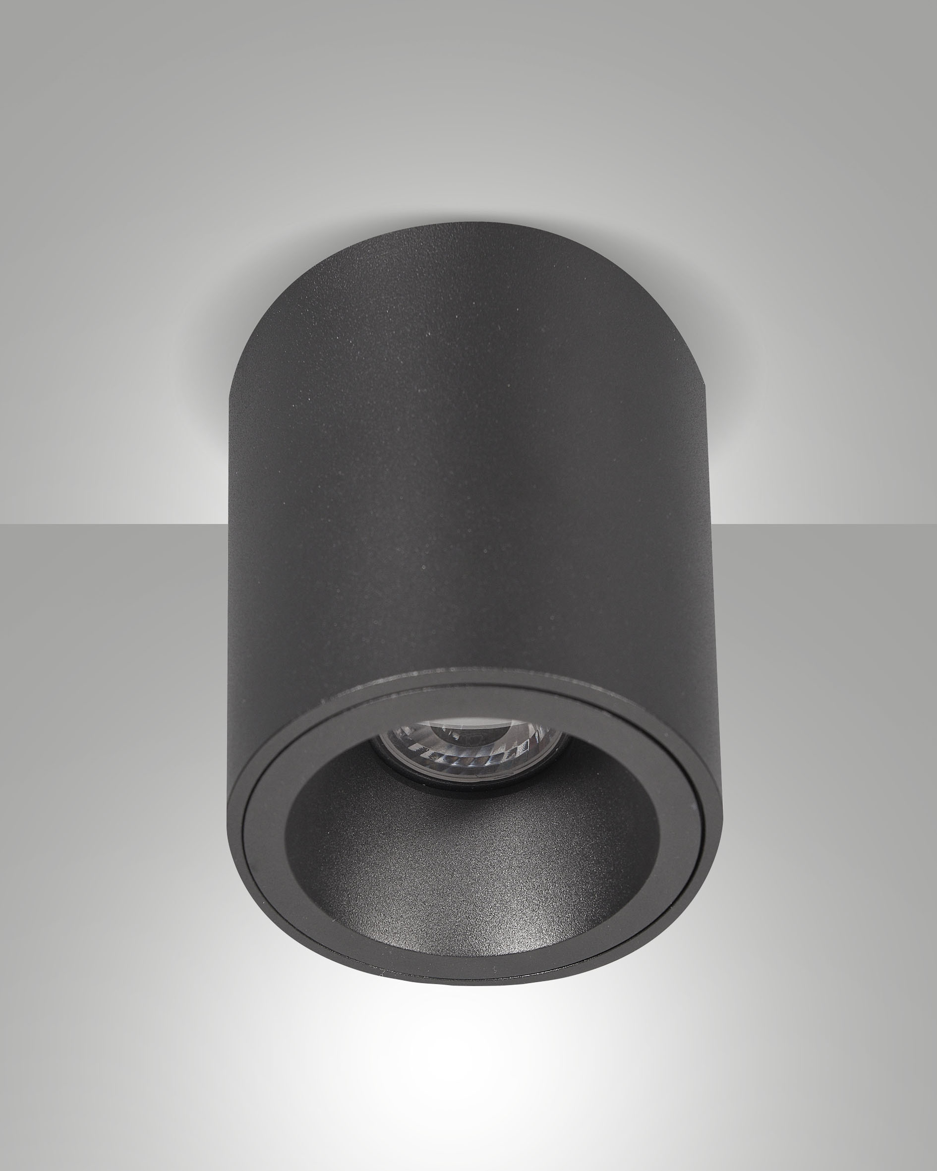 Small cylindrical aluminium light spot, with lampholder for GU10 bulb. Indoor use for surface-mounting. Available in white or black finish. The recessed central light source allows a glare reduction. Suitable for residential and commercial environments. GU10 lampholder included.